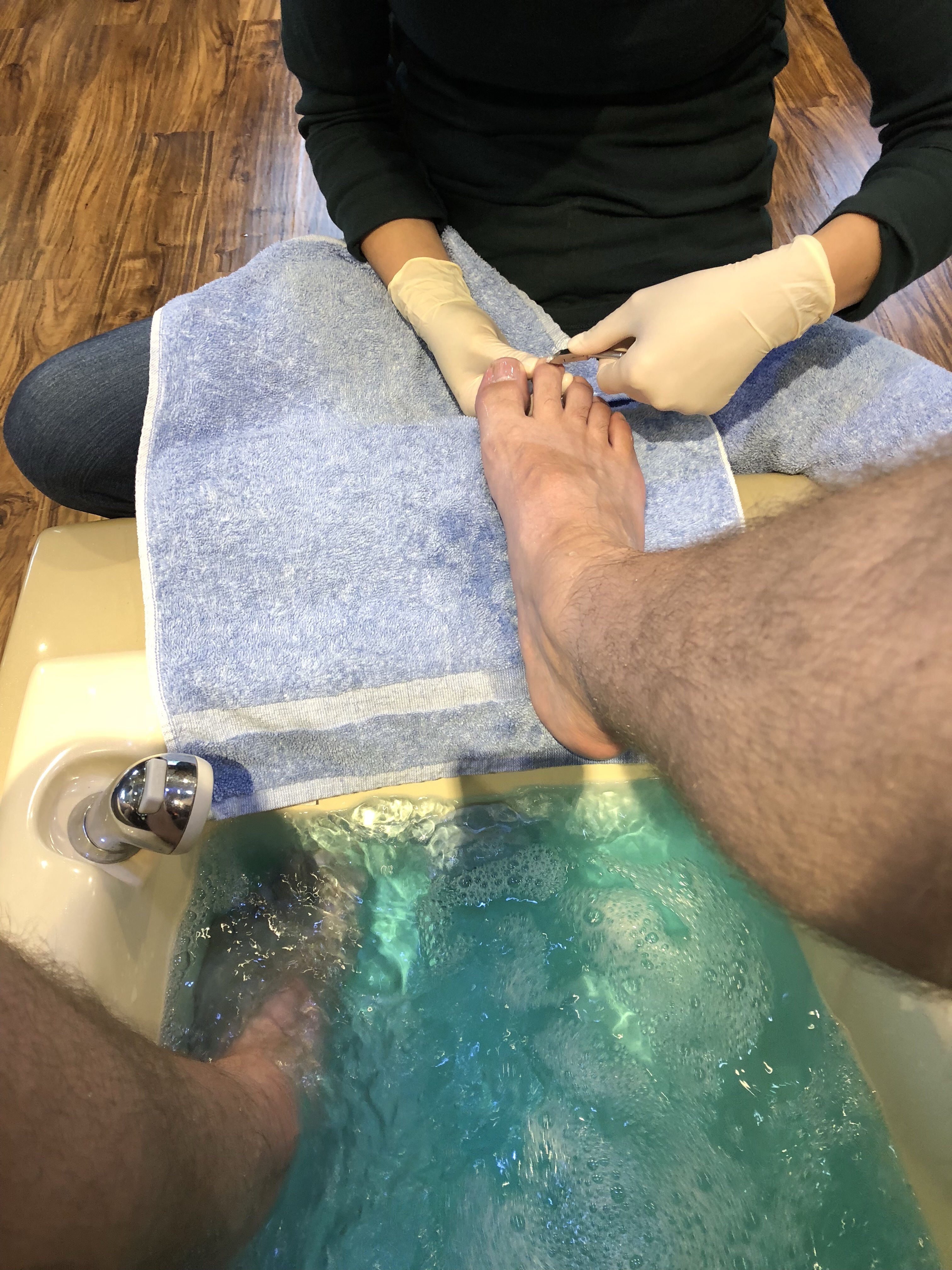 The camera on my phone. Don’t believe me about pedicures? Meet my fuzzy legs, oddly-tanned foot from wearing sandals and the pedicurist.